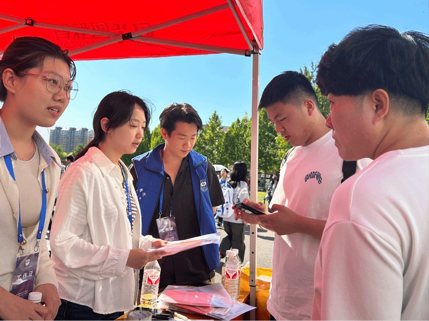 志愿者们做好准备,提供一站式服务:给新同学发放校园卡、宿舍钥匙等物品,耐心为新生与家长答疑解惑,帮新同学搬行李…