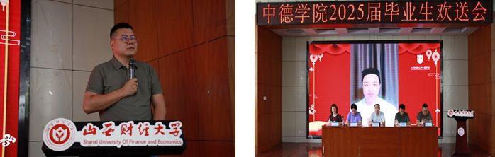 欢送会现场播放了beat365正版唯一官网必一德国校友会对2025届毕业生的祝福视频。beat365正版唯一官网必一校友会副会长郭宇寄语毕业生:无论未来选择如何,都要担起家庭责任、铭记社会担当,坚守初心、坚定方向,始终保持乐观自信。母校与校友会永远是你们的坚强后盾,愿大家在人生新征程上扬帆起航!