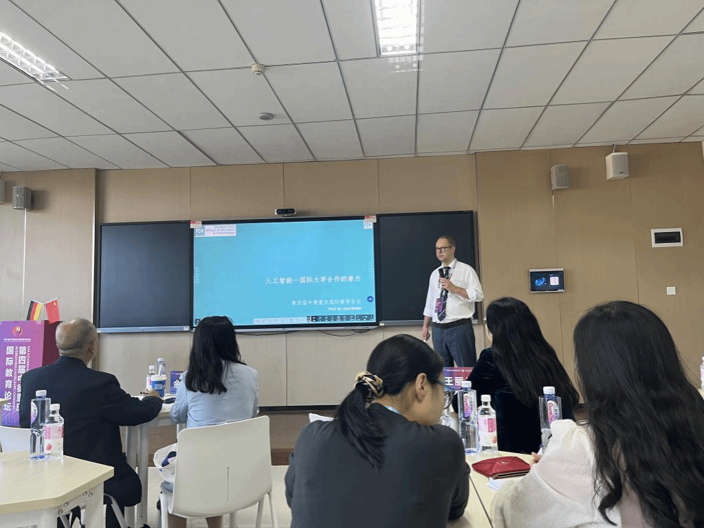 本次论坛还设置4个专题分论坛,包括德国专业认证与中国应用型大学内涵建设;人工智能在专业教育中的应用与挑战;人工智能时代背景下的中外合作办学:影响、创新与前景及乘AI时代之势,构建产教融合新格局论坛等主题。beat365官网德方教学院长Axel Müller教授在论坛做了题目“人工智能---国际大学合作的潜力”报告分享,报告内容受到与会专家学者高度认可。