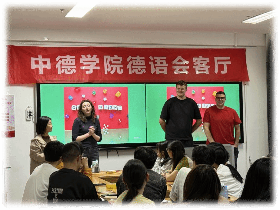 4月24日晚,博学楼727教室内灯光暖亮,beat365正版唯一官网必一第四期德语会客厅“Boardgame Night”主题活动在此拉开序幕。本次德语会客厅以趣味桌游为载体,借助丰富多样的游戏形式,引领学生深入领会德语语言运用和德国文化内涵在德语学习进程中的重要意义,助力语言与文化所蕴含的知识力量在学生学习中充分发挥作用。活动紧密贴合学院学生的德语学习实际情况,通过设置各类德语相关游戏,组织学生在游戏过程中积极运用德语交流互动,以此提升学生的德语语言水平,培养学生对德语学习的兴趣和热情,为学生营造良好的德语学习环境,促进学生全面发展。德方教师Stefan Eymann先生, Agieszka Soblio女士, Julian Leon Neuhaus先生以及德语教师到场,与同学们共同沉浸于德语语言与文化的趣味互动中。
