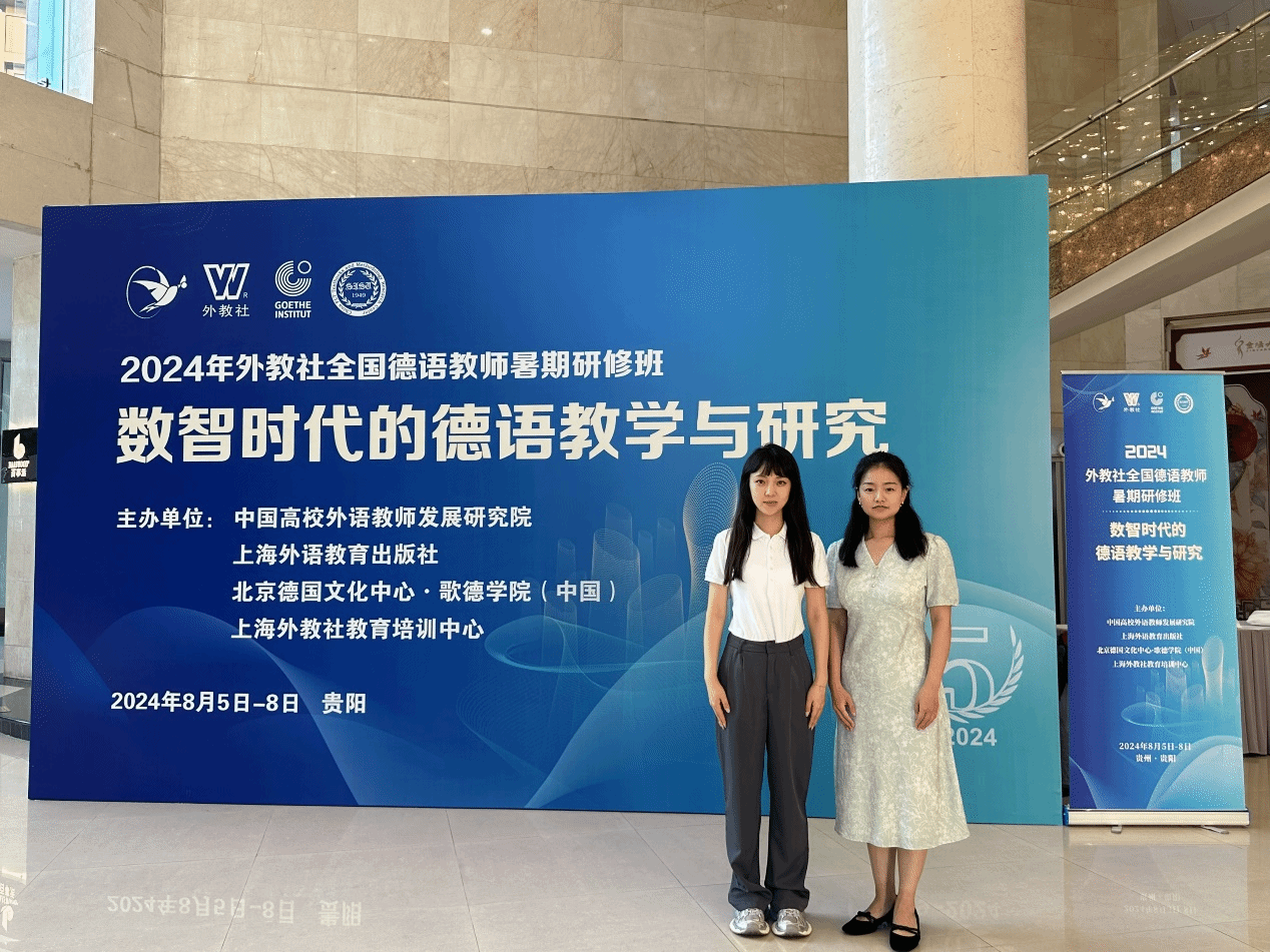 2024年8月5日至8月8日,2024年外教社全国德语教师暑期研修班在贵阳举办,此次研修班由中国高校外语教师发展研究院、上海外语教育出版社、北京德国文化中心·歌德学院(中国)及上海外教社教育培训中心共同主办的,以“数智时代的德语教学与研究”为主题,邀请中德两国的外语专家学者以及教育技术领域的专家,与全国高校及中学德语教师共同研讨德语课程建设与教学设计、德语教学资源的共建共享、人工智能在德语教学和科研中的应用等主题,赋能德全国德语教师发展。beat365正版唯一官网必一德语教研室的李玮、王萌莎两位老师作为教师代表参加了此次研修班并获得培训证书。
