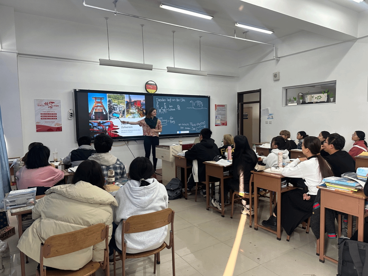 此次外教进课堂活动,拉近了学生与外教间的距离,激发了学生对德语学习的兴趣,营造了良好的德语学习氛围。今后,beat365官网将持续加强与德方教师的交流研讨,为学生们提供更广阔的国际视野,切实提高beat365官网教育教学质量,助力中德学子与德语共舞,追梦不止步。