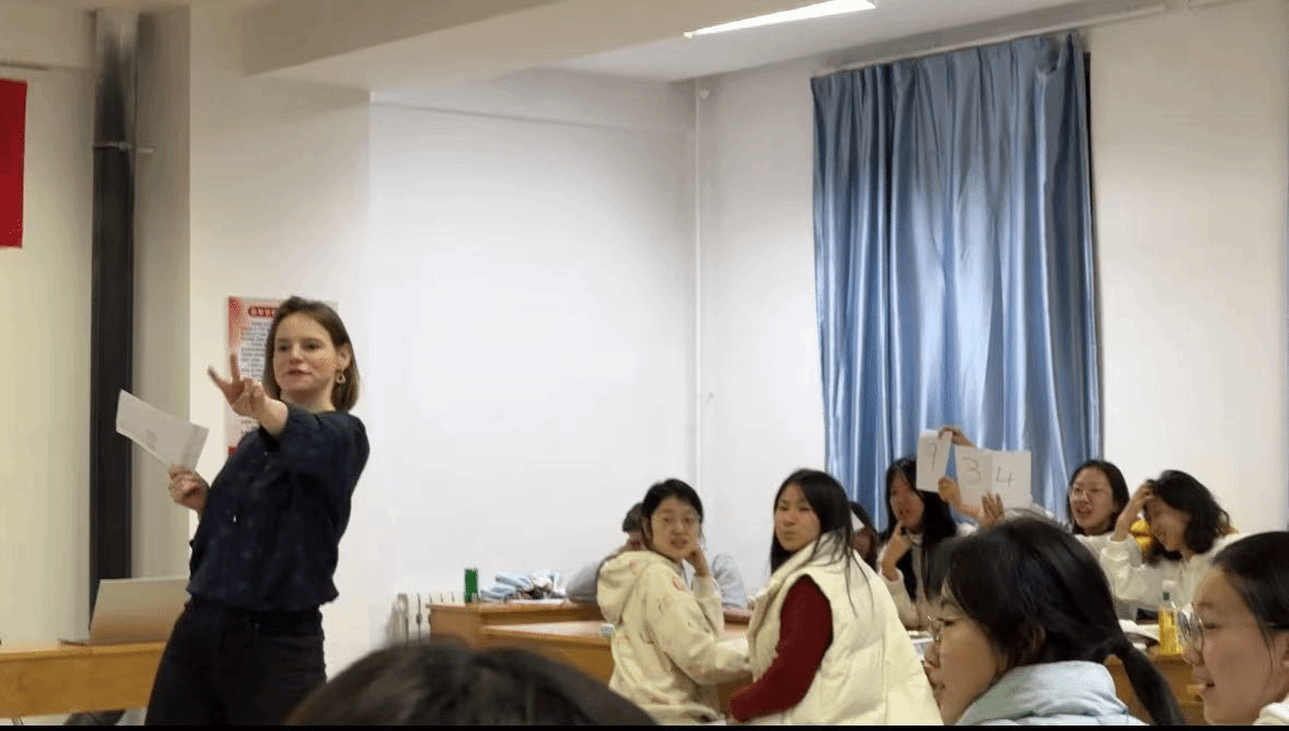 本次活动共分为三个环节。第一个环节,Janika Steiner老师将欧洲地图按照国家分为若干个板块,通过图片向同学们分别介绍了德国、比利时、意大利、西班牙、瑞典、奥地利、匈牙利和土耳其等多个国家的特色美食。在这个过程中同学们不仅对欧洲各国的食物有了进一步的了解,还积累了食材相关的词汇。之后还设置了问答环节,加深了同学们对德国食品文化知识的印象。